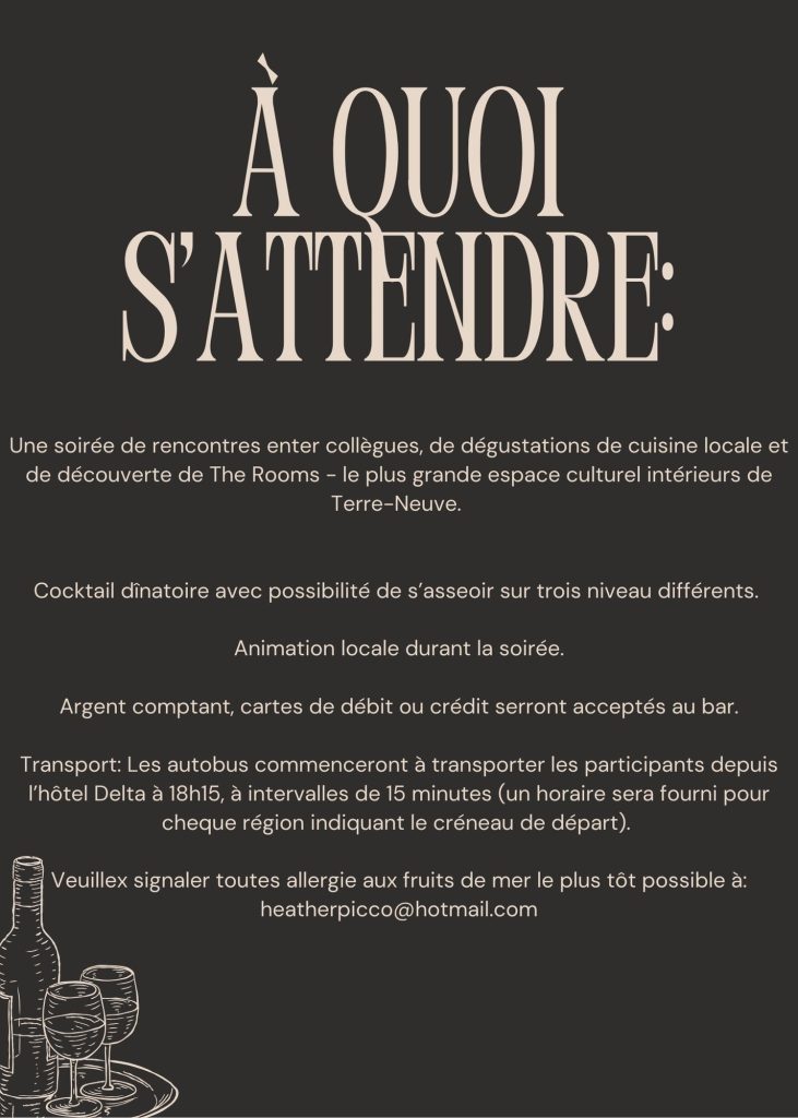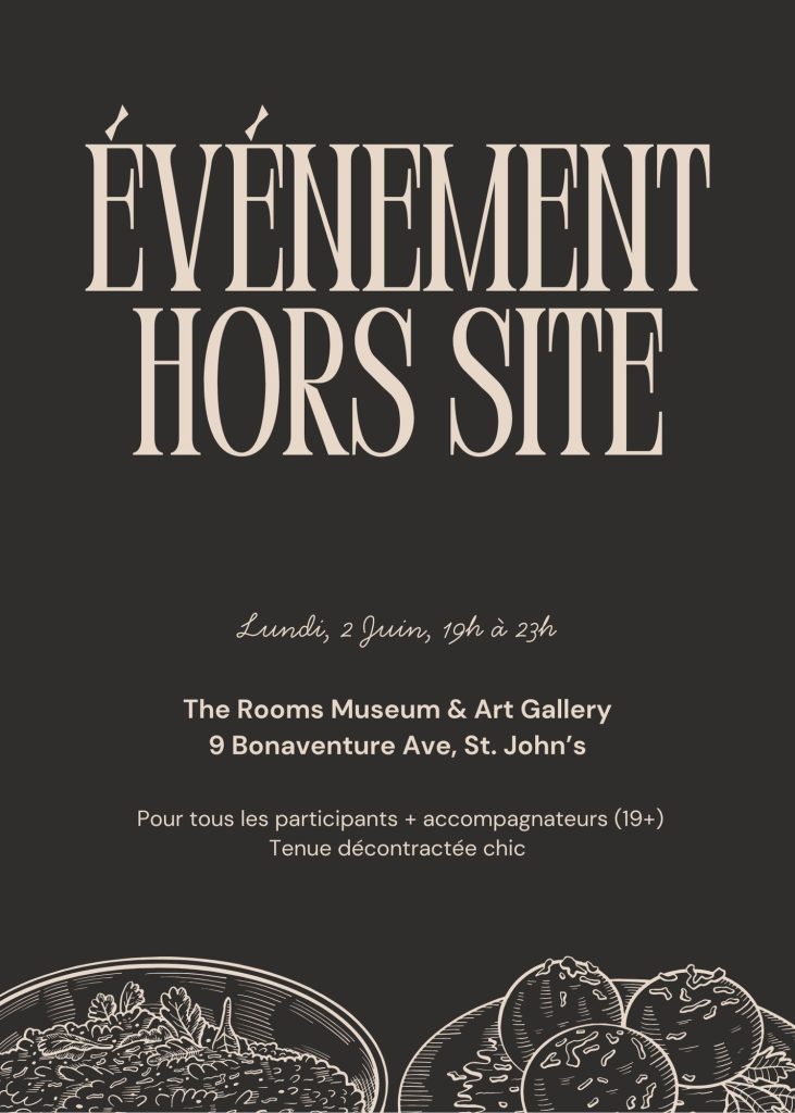 Lundi 2 juin 2025 – Souper hors site hébergé par le CO (The Rooms)