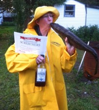 Un « screech-in » est une cérémonie terre-neuvienne qui accueille les non-Terre-Neuviens dans la communauté en leur conférant le titre de « Terre-Neuvien honoraire ». La cérémonie consiste à boire du rhum Screech de Terre-Neuve, à embrasser une morue et à réciter une courte phrase.